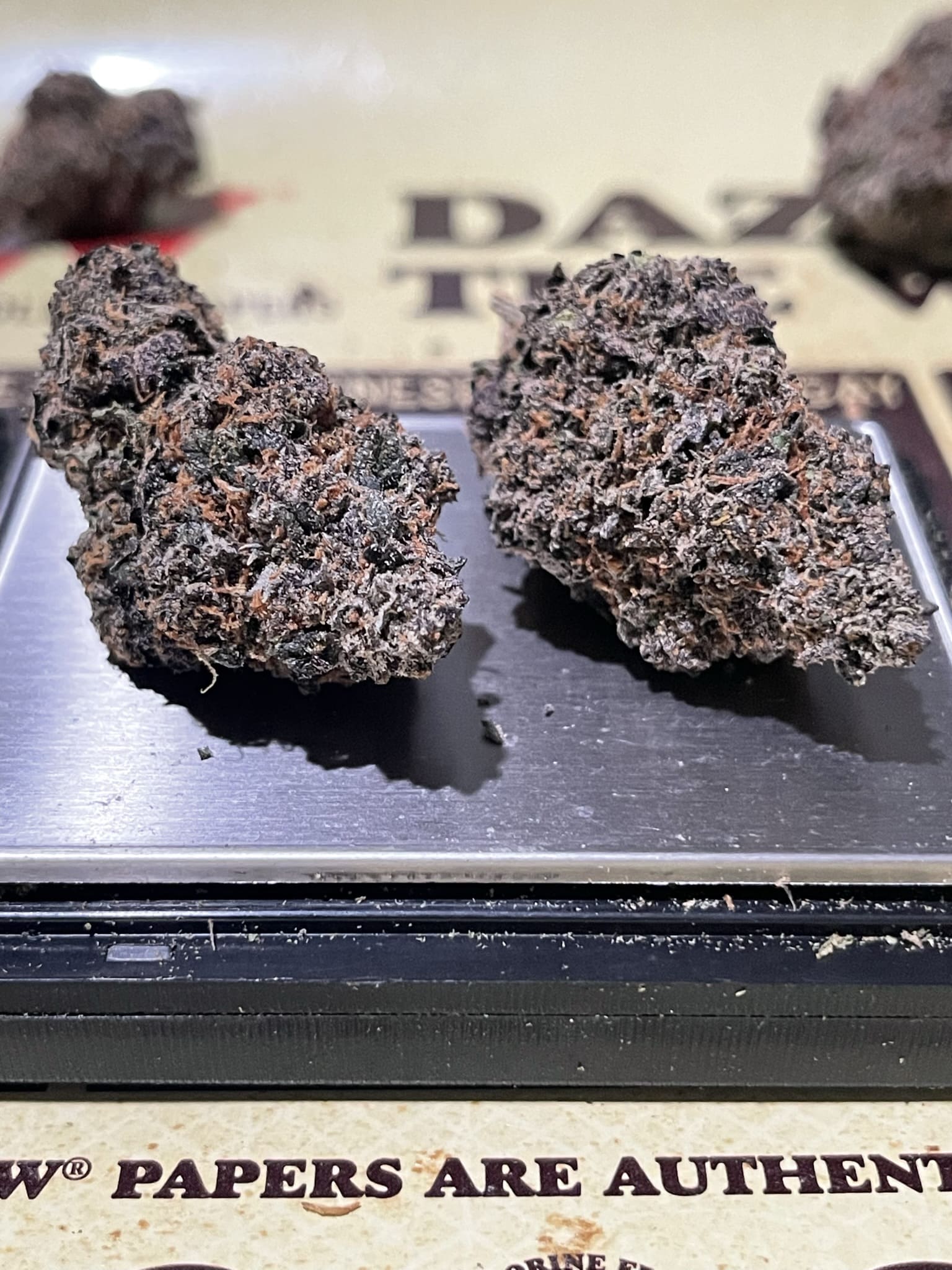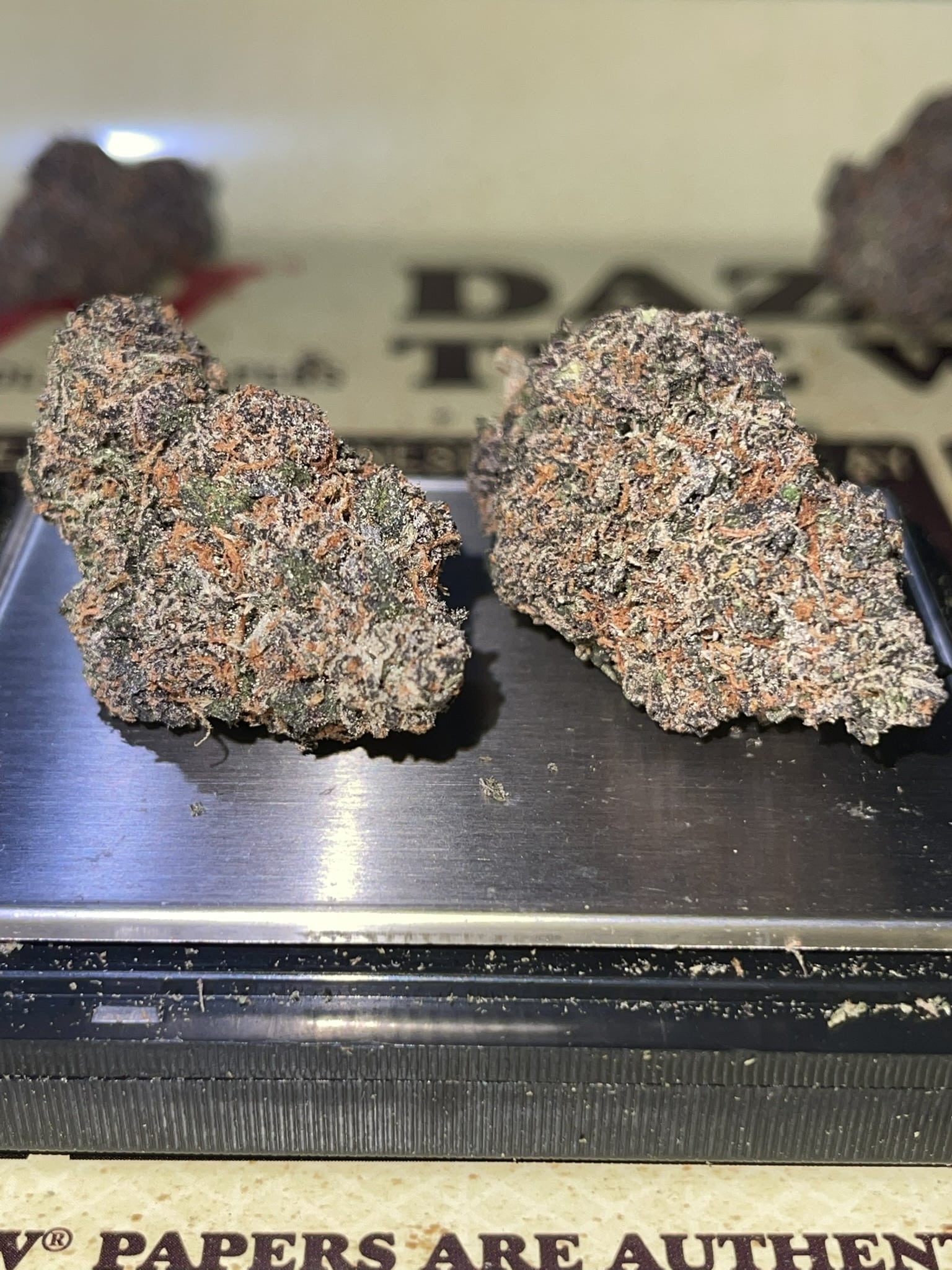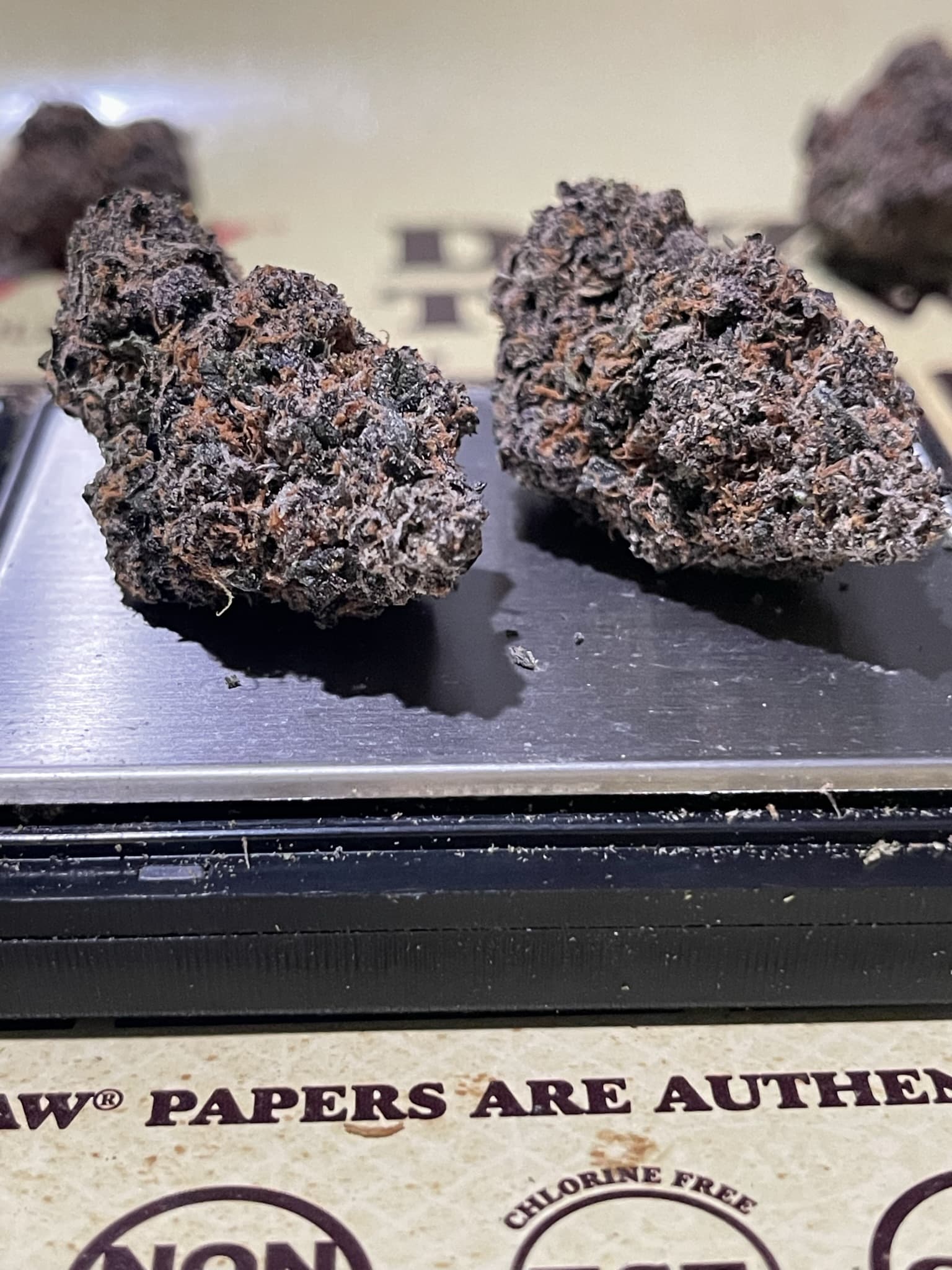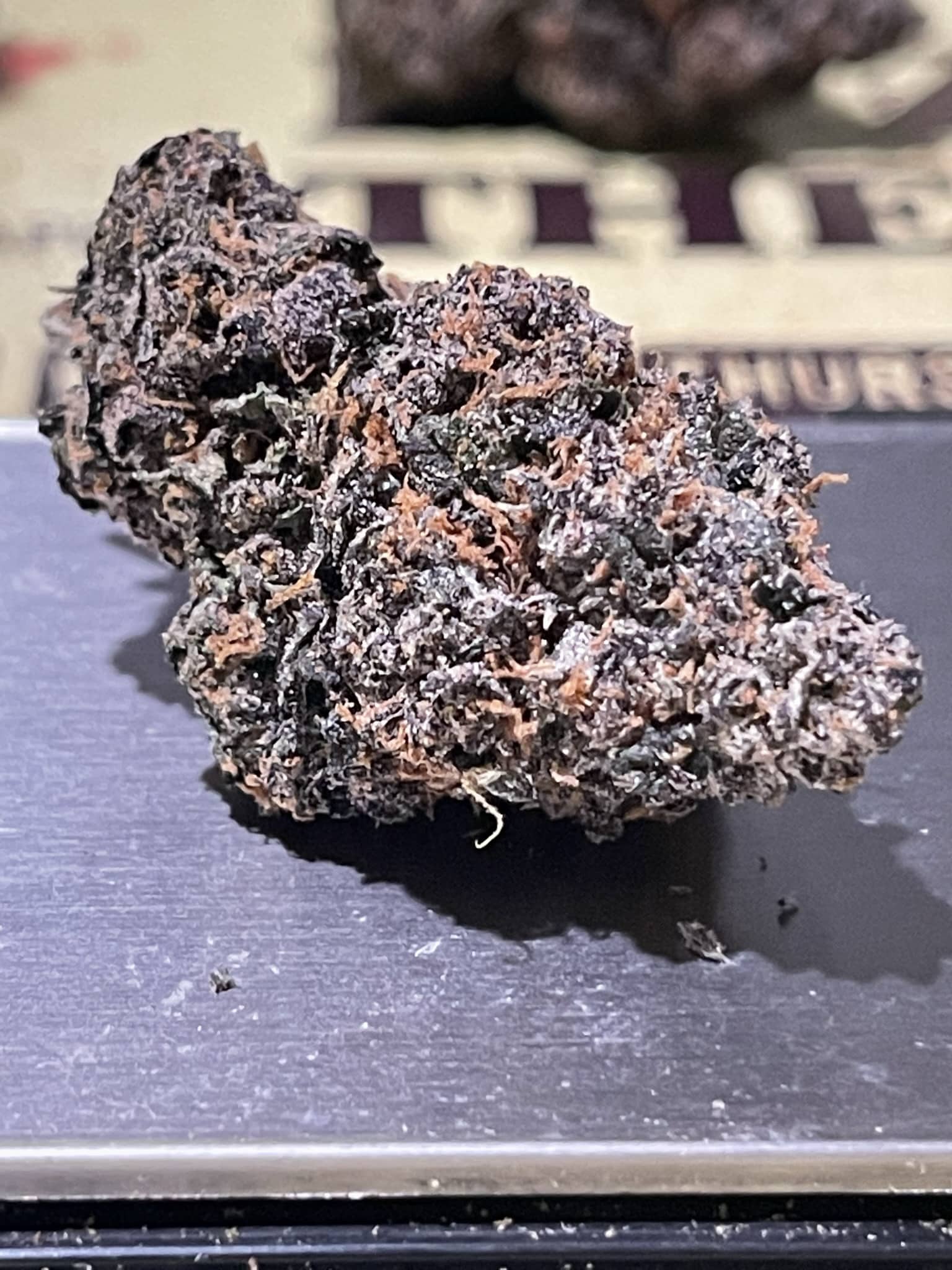 Today’s review is London Jelly Mints a cross between London Pound Cake 75 and Jealousy. These buds have a unique gmo like shape and are semi dense with a sticky feel. The colors are primarily a combination of forest green with dark plum purples and blood orange pistils.