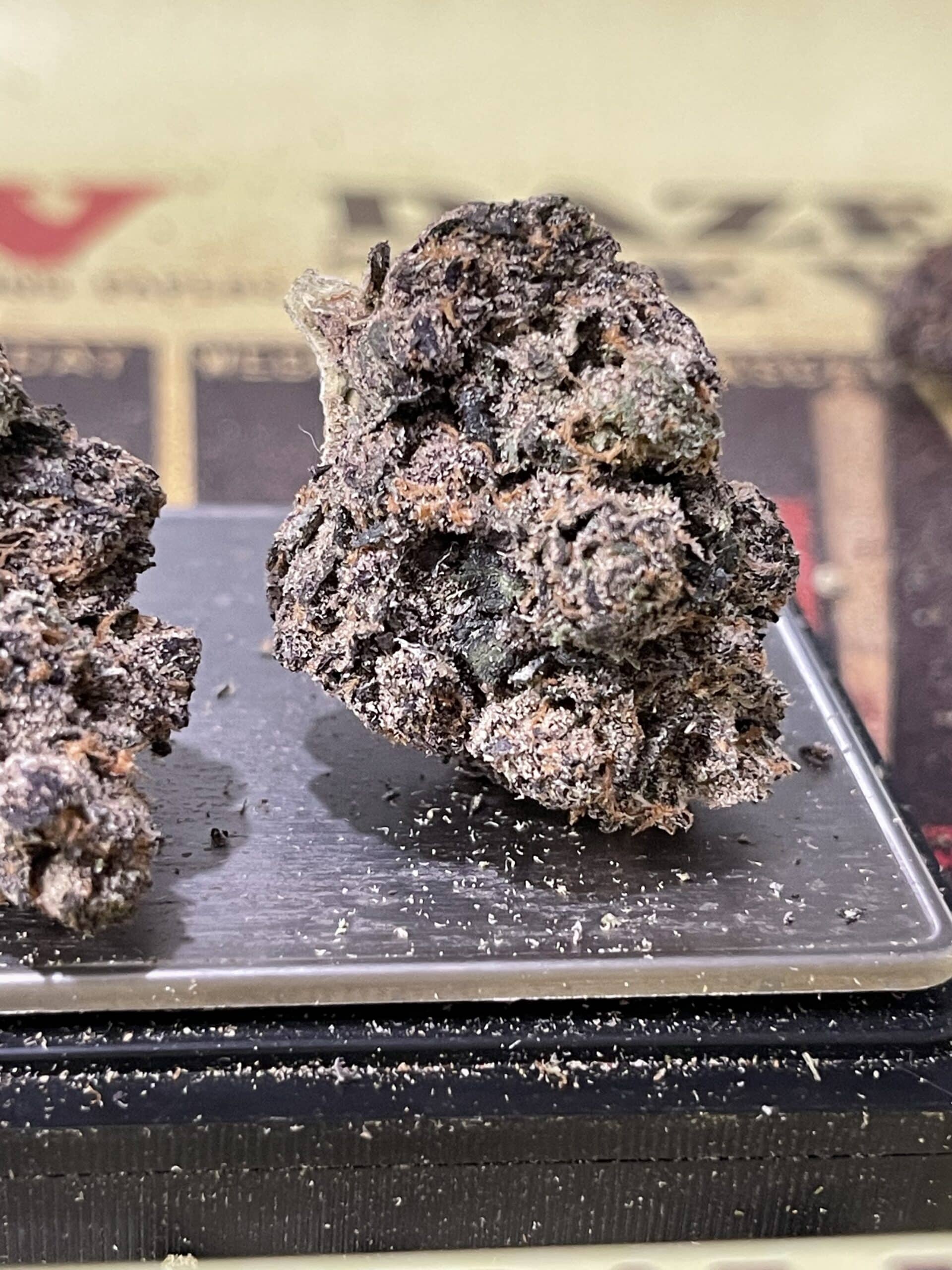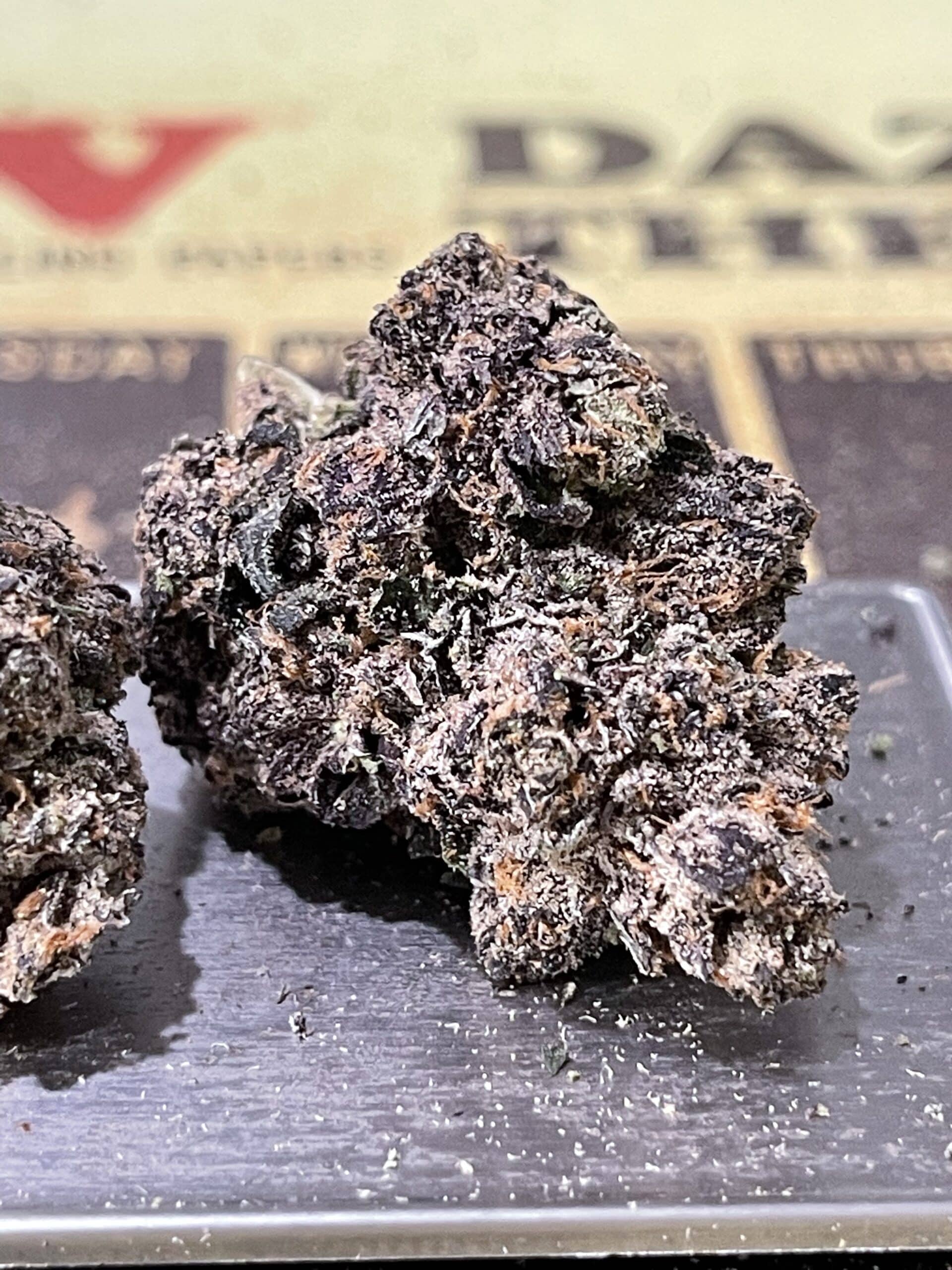 One, wide med/small bud w/ the rest of the pack filled with fluffy popcorn nugs. Nice humidity on the one bud, cure, trim is fine. “D+” Grade due to selection.